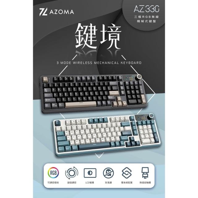 AZOMAAZ系列 三模RGB無線機械式鍵盤 自訂小螢幕 四色可選(青雲/墨金/煙青/茶棕)