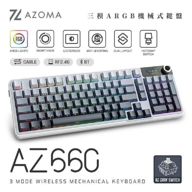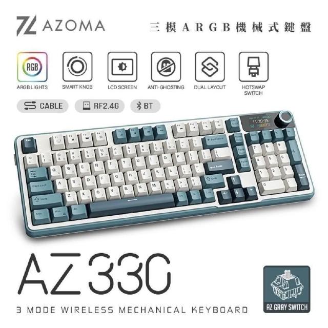 AZOMAAZ系列 三模RGB無線機械式鍵盤 自訂小螢幕 四色可選(青雲/墨金/煙青/茶棕)