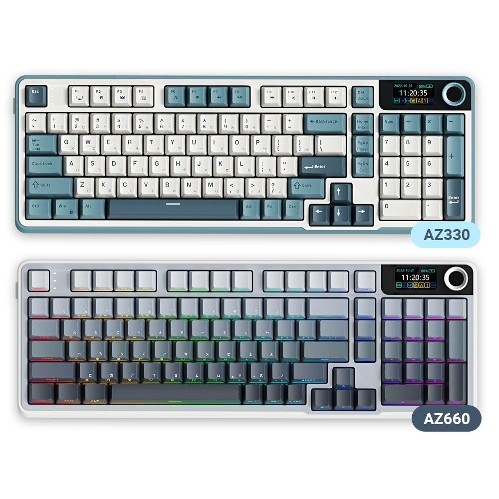 AZOMAAZ系列 三模RGB無線機械式鍵盤 自訂小螢幕 四色可選(青雲/墨金/煙青/茶棕)