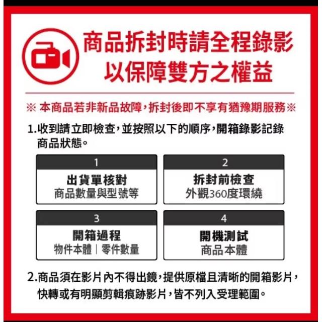 - 為保障您購物權益,開箱過程請全程錄影;如有問題請使用APP透過「問問」與商店聯繫,祝您購物愉快。