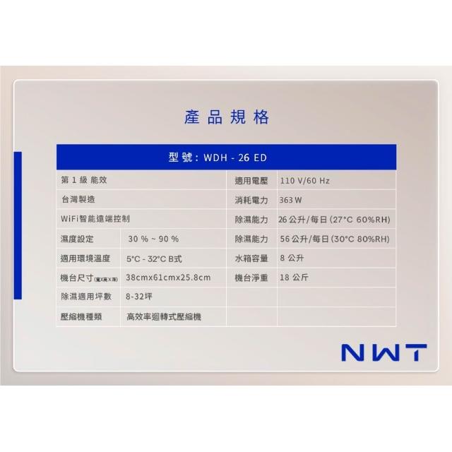NEW WIDETECH 威技WDH-26ED 26LWiFi智能除濕機 1級能效(可申請補助)