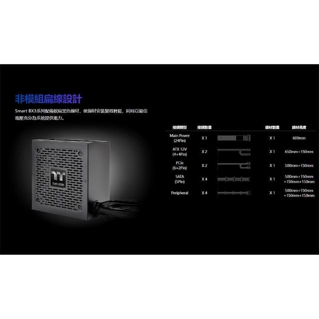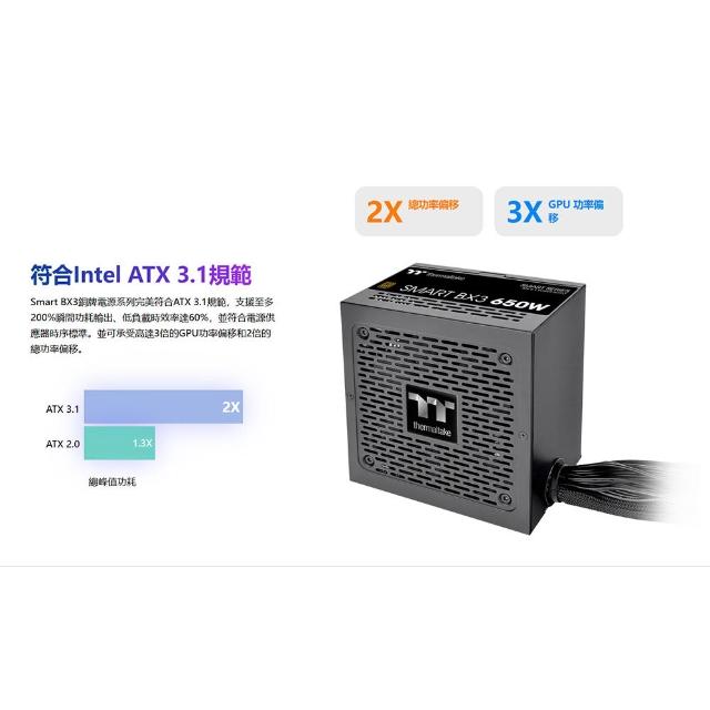 Thermaltake 曜越 Smart BX3 650W 銅牌認證/ATX 3.1/五年保 電源供應器