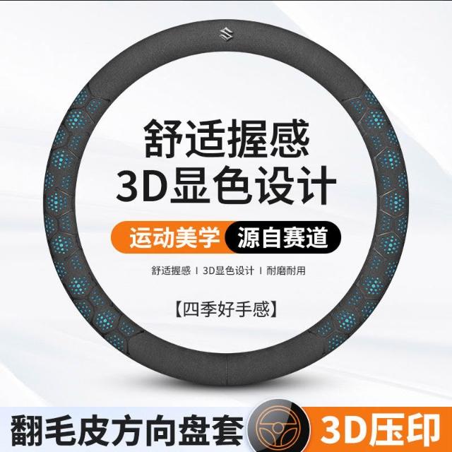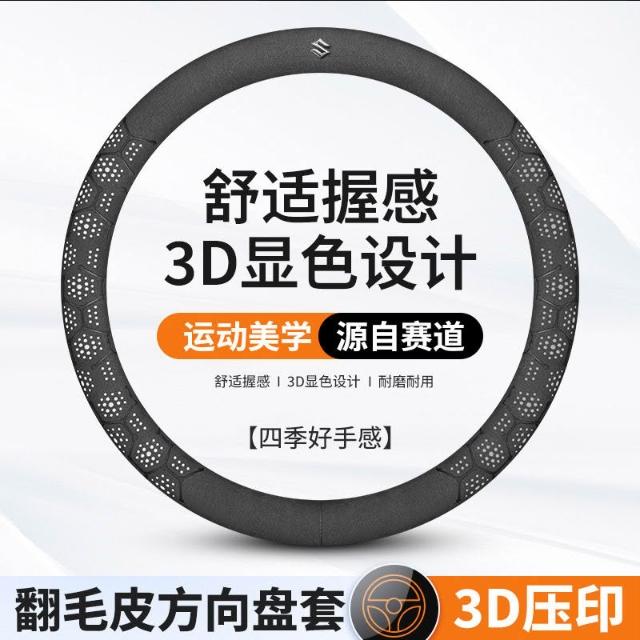 鈴木方向盤套 3D壓印 運動翻毛皮方向盤套 四季車把套 防滑套 適用 Swift Jimny Vitara Alto Ignis SX4