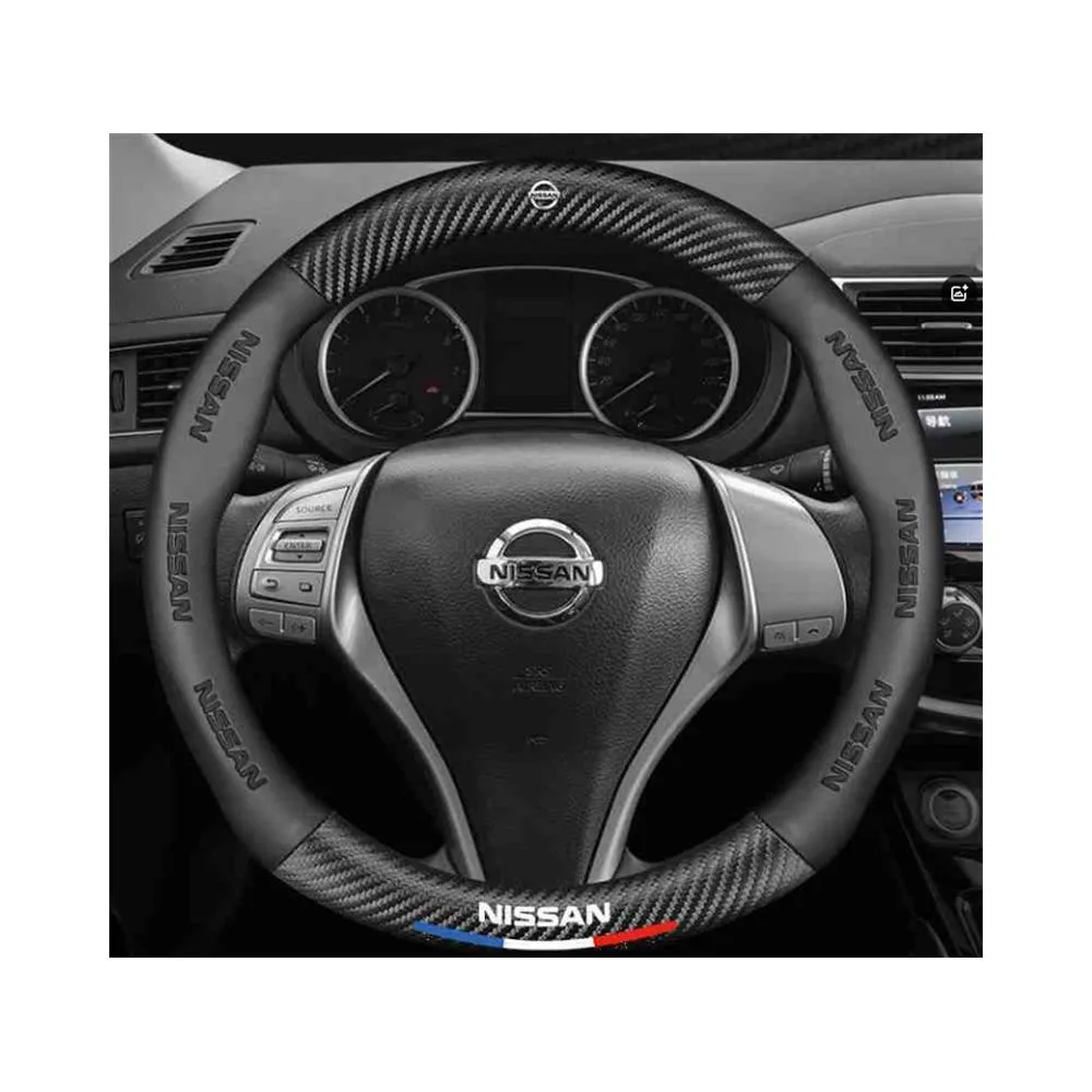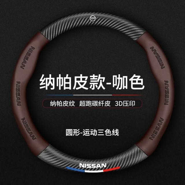 日產方向盤套3D壓印四季車把套 防滑套 LIVINA TIIDA SYLPHY KIcks xtrail TEana MArch Murano Rogue 專用納帕皮車把套