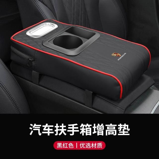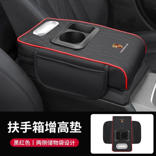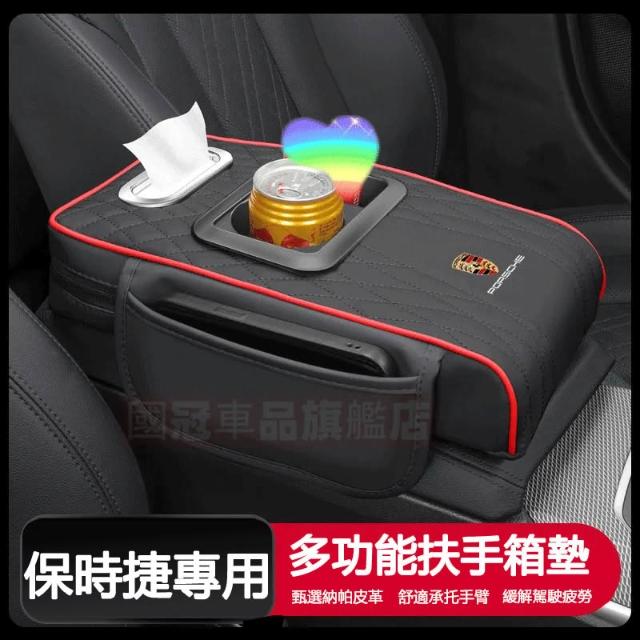 保時捷汽車扶手箱增高墊 杯架紙巾盒四合一 汽車扶手箱墊 中央扶手墊適用於Cayenne Macan Panamera Cayman Boxster 718 987