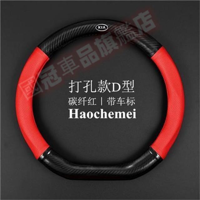 起亞方向盤套 碳纖維真皮方向盤套 Carens Soul Sorento Carnival Optima Sportage四季通用透氣防滑方向盤套