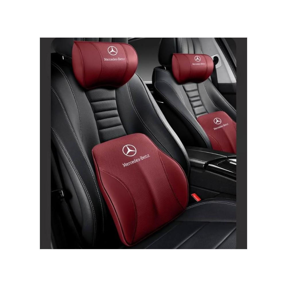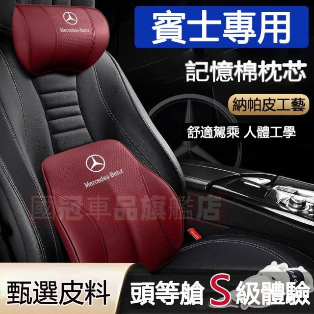 賓士頭枕腰靠 真皮記憶棉護頸枕 腰靠墊 適用 E系 C系 A系 B系 S系 CLA GLA GLC GT GLB GLE 專用