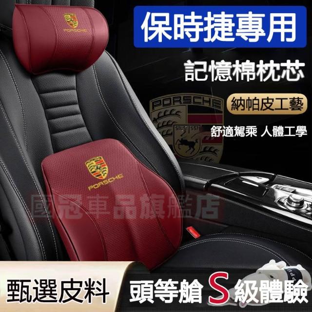 保時捷頭枕腰靠 真皮記憶棉護頸枕 腰靠墊 適用 Cayenne Macan Panamera Cayman Boxster 718 987