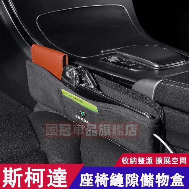 斯柯達汽車座椅縫隙收納盒 OCtavia YEti SUperb KODIAQ Fabia KAROQ RAPID kamiq 翻毛皮置物盒 汽車多功能儲物盒
