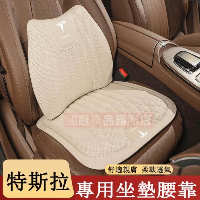特斯拉坐垫腰靠 納帕打孔真皮座椅墊 Tesla Model3 ModelS ModelX Modely 車用椅墊汽車坐墊腰靠