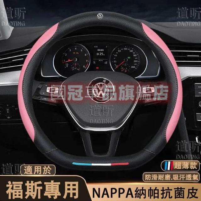 VW福斯專用 真皮方向盤套 納帕皮透氣超薄防滑套 GOlf Tiguan TOuran POlo troc passat Sharan t-cross方向盤皮套