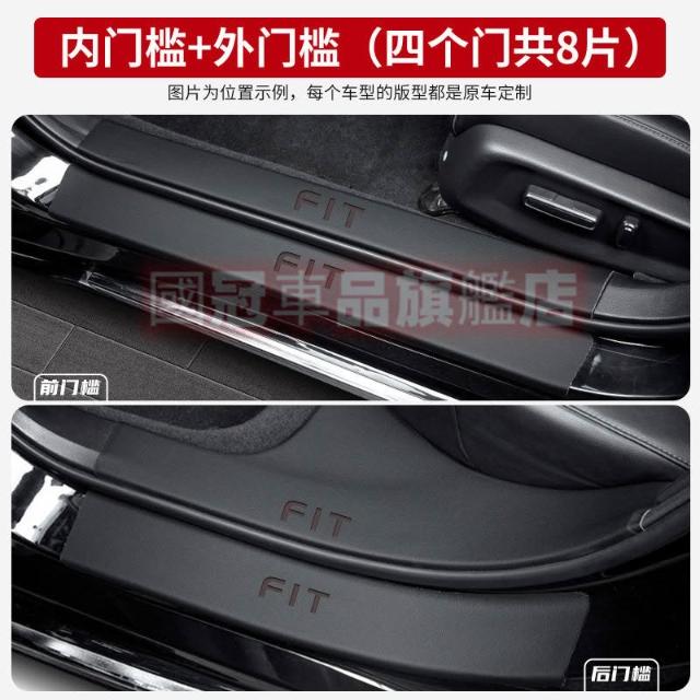 本田Fit門檻條 汽車門檻條 14-25款Fit適用腳踏板 皮革門檻條防護貼 防刮防護防踩貼 後備箱後護板