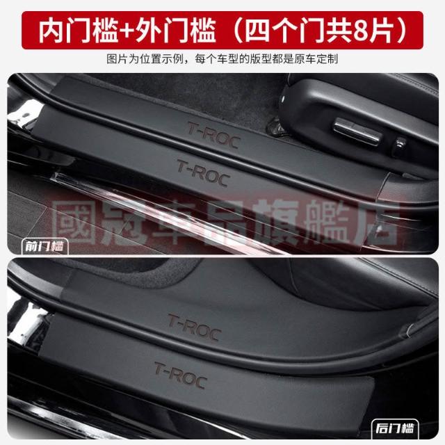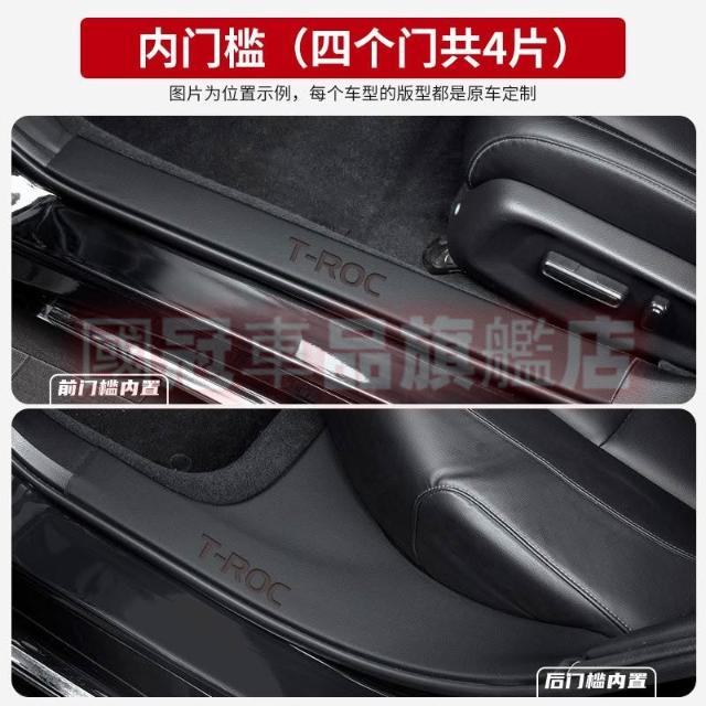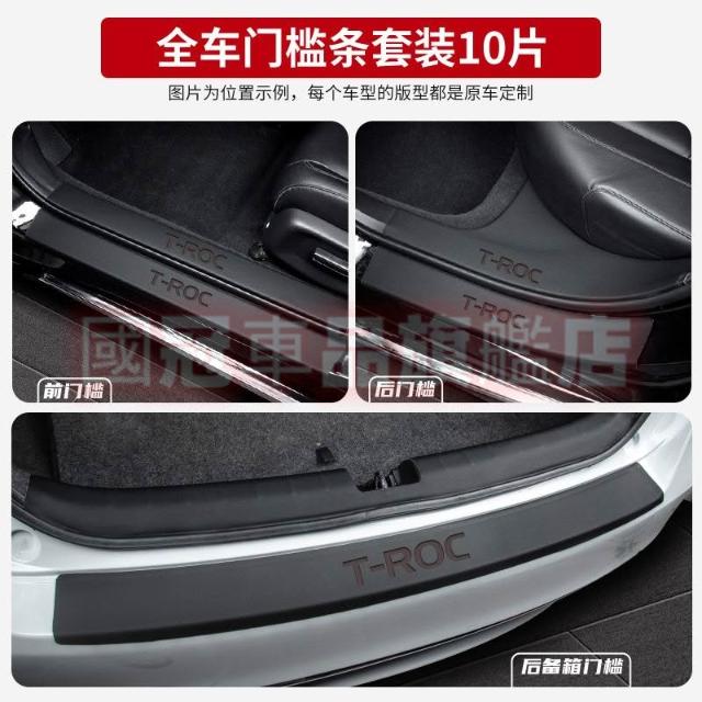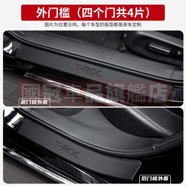 福斯T-ROC門檻條 汽車門檻條 T-ROC適用腳踏板 皮革門檻條防護貼 防刮防護防踩貼 後備箱護板