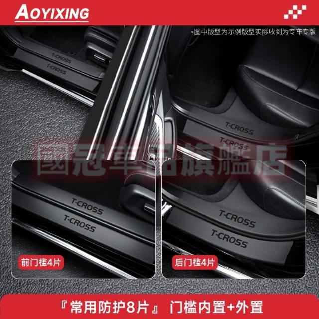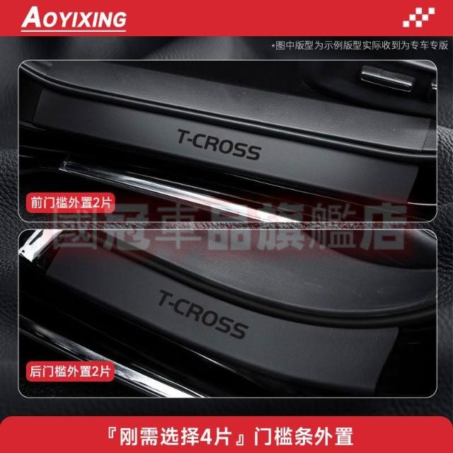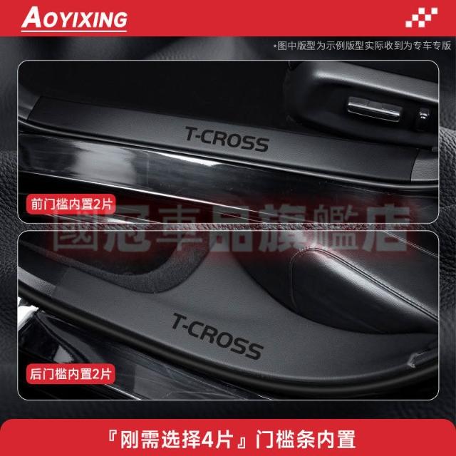 福斯T-Cross門檻條 汽車門檻條 T-Cross適用腳踏板 皮革門檻條防護貼 防刮防護防踩貼 後備箱護板