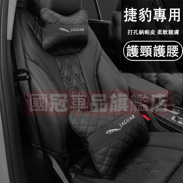 Jaguar捷豹專用頭枕腰靠墊 透氣納帕皮頸枕 XF FPACE XJ XE XFL XEL記憶枕墊護腰墊