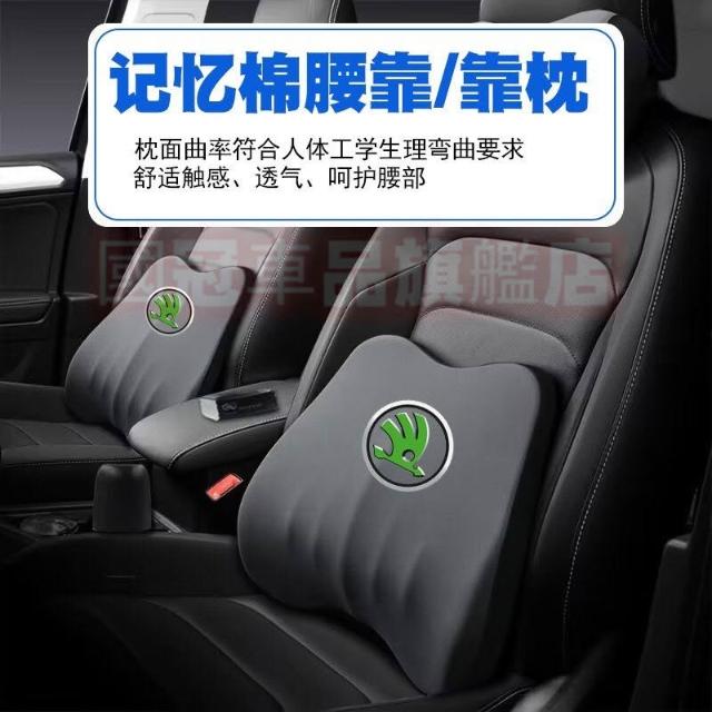 斯柯達汽車頭枕腰靠 記憶棉護頸枕 腰靠墊 OCtavia YEti SUperb KODIAQ Fabia 車用頭枕腰靠