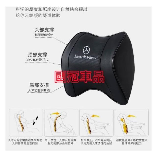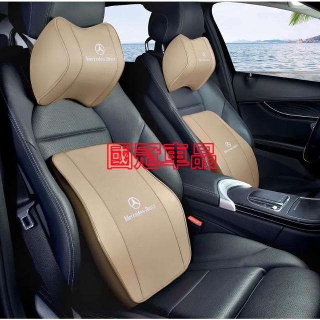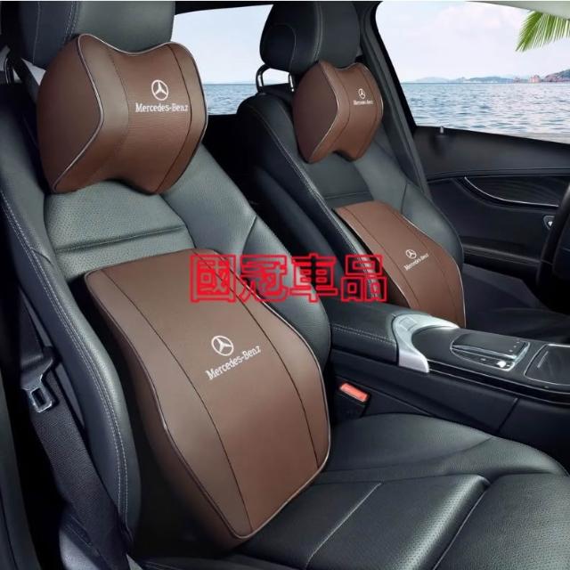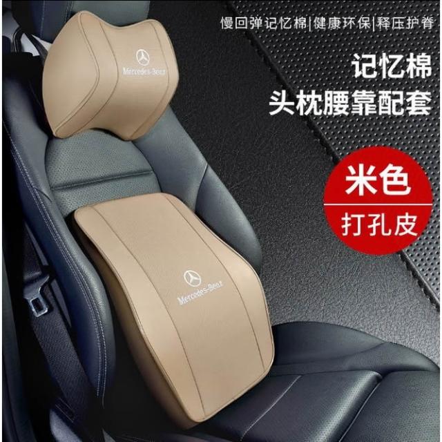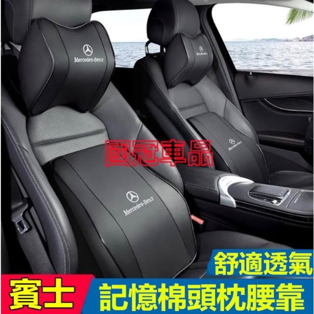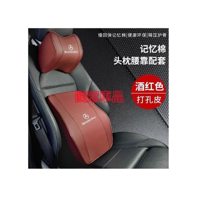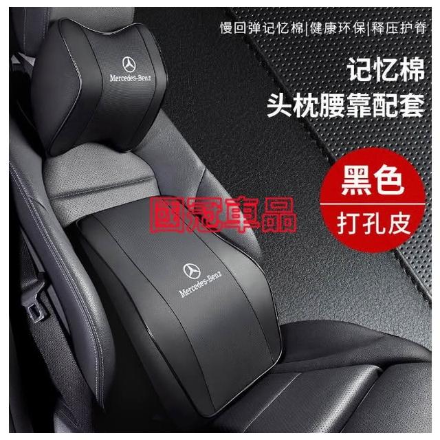 賓士汽車頭枕腰枕靠墊 記憶棉 打孔皮革E系 C系 A系 S系 CLA GLA GLC GT B系 GLB車用護頸枕腰靠墊