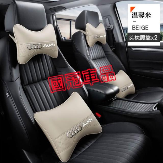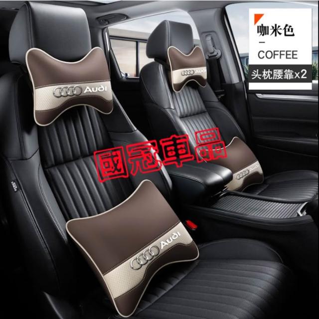 奧迪頭枕腰靠墊 A1 A4 A3 A5 A6 A7 A8 Q5 Q2 Q3 四季通用 打孔皮革 舒適透氣頭枕腰靠