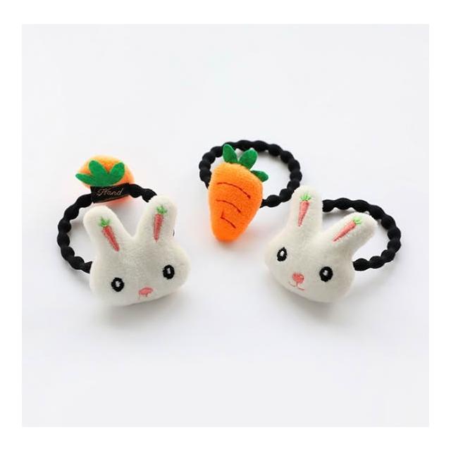 橙光小舖☀️立體卡通毛絨兔子紅蘿蔔髮束小兔子髮飾兒童髮飾可愛髮束髮圈綁頭髮馬尾髮飾