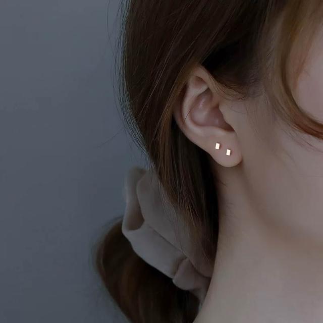 釘 耳環 925銀長方塊耳釘 耳飾 純銀耳釘 養耳棒 耳針 耳骨釘 耳環純銀 飾品