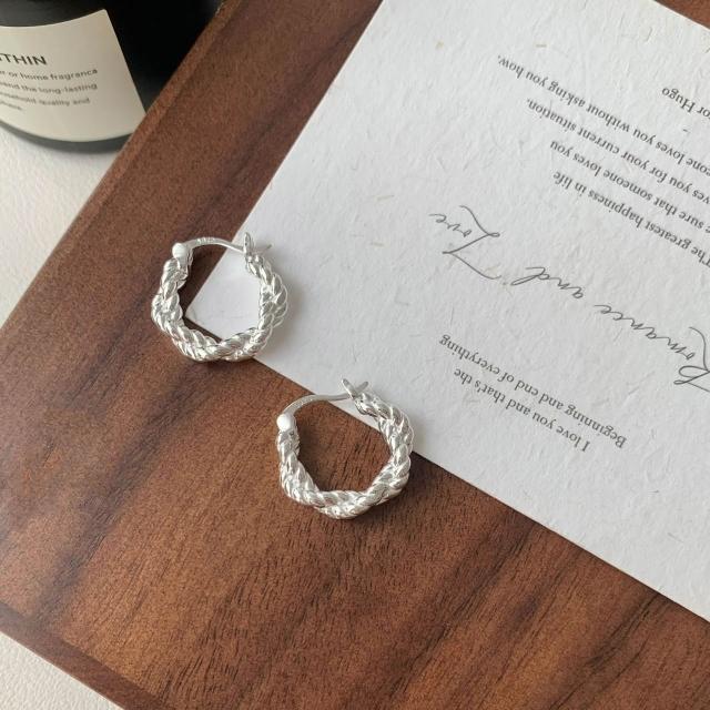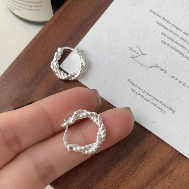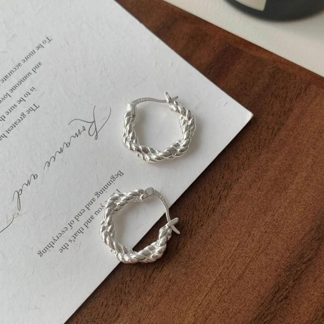 耳環 純銀耳環 S925通體純銀耳環耳環 扭紋麻花耳環 圈圈耳環 耳飾 耳圈 銀耳環 耳扣 飾品