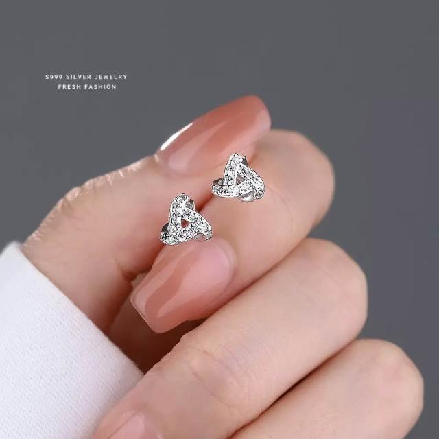 耳釘 耳環 純銀耳釘 s999足銀纏繞耳釘 微鑲鑽鋯石耳釘 耳飾 耳環 女生耳釘 閨蜜耳釘 養耳洞防過敏耳釘 銀耳環