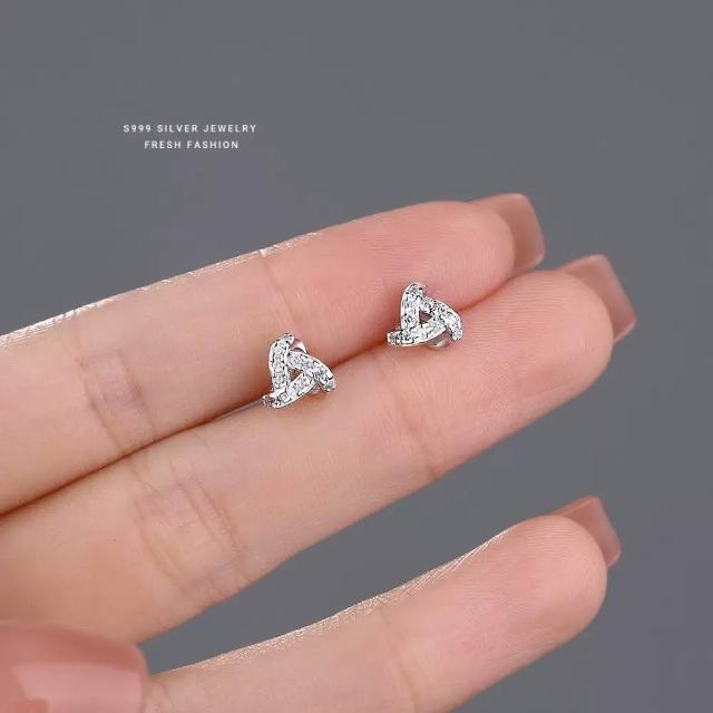耳釘 耳環 純銀耳釘 s999足銀纏繞耳釘 微鑲鑽鋯石耳釘 耳飾 耳環 女生耳釘 閨蜜耳釘 養耳洞防過敏耳釘 銀耳環