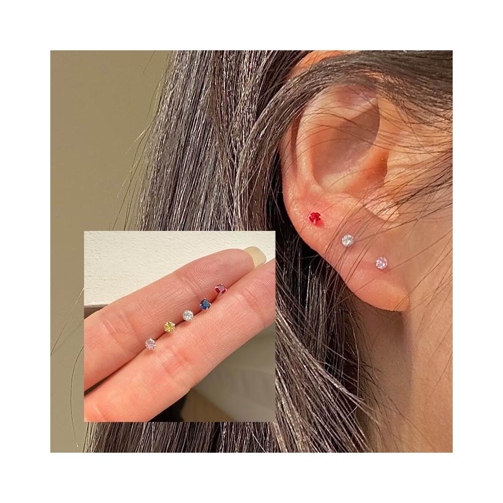 耳釘 耳環 純銀耳釘S925純銀彩色鋯石耳釘女 耳飾 耳環 女生耳釘 閨蜜耳釘 養耳洞防過敏耳釘