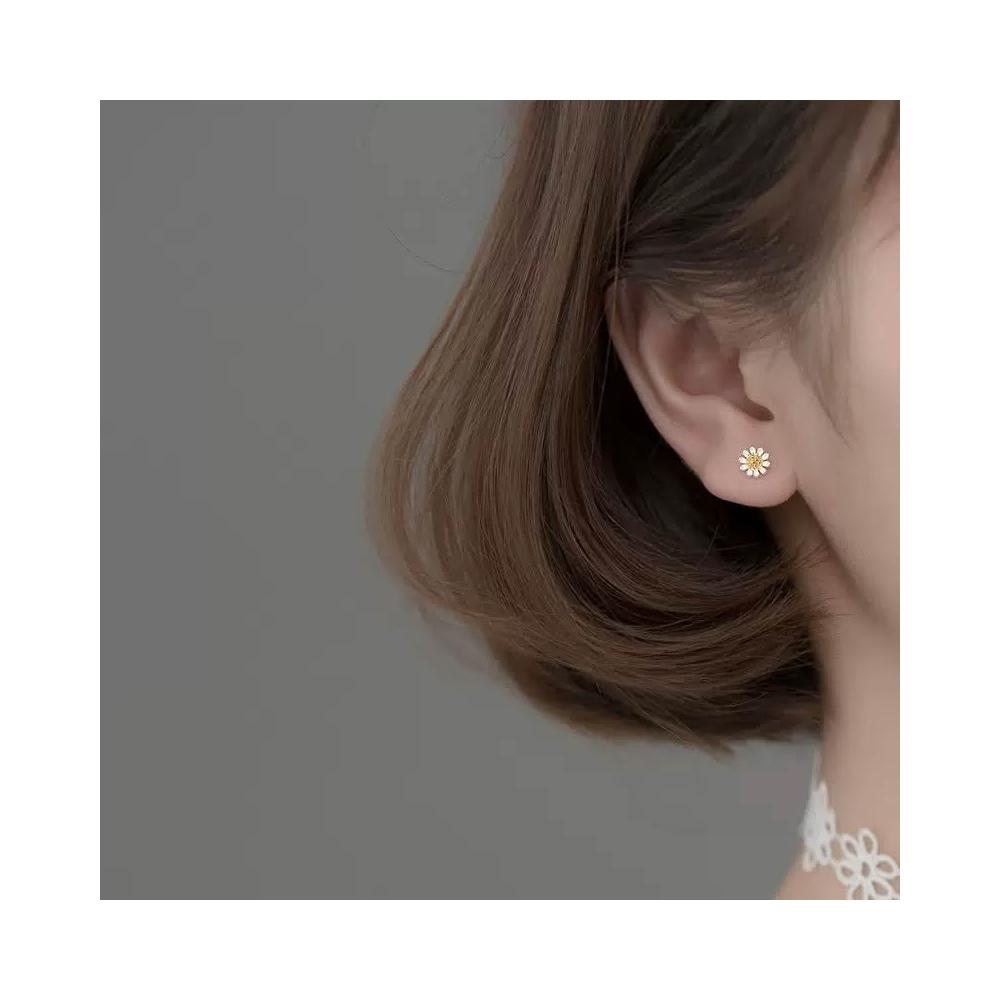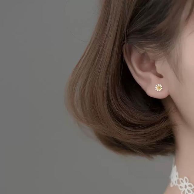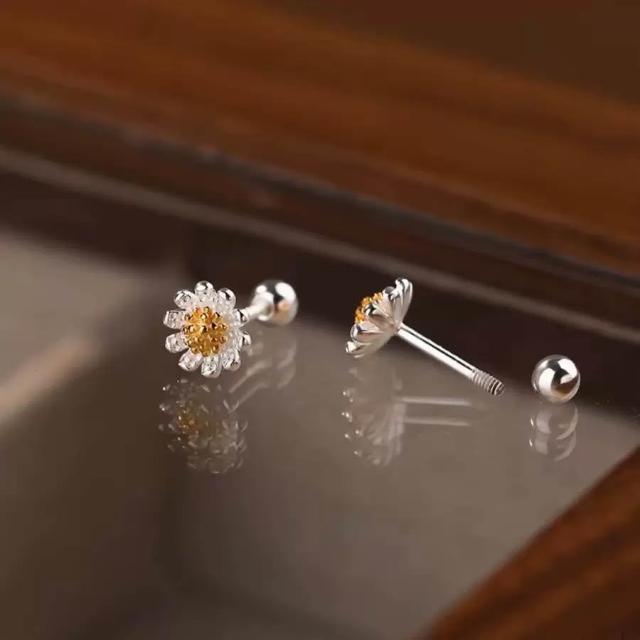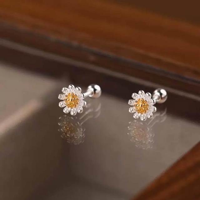 耳釘 耳環 純銀耳釘 S925銀小雛菊花朵耳釘 耳飾 耳環 女生耳釘 閨蜜耳釘 養耳洞防過敏耳釘 螺絲鎖扣耳釘