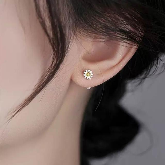 耳釘 耳環 純銀耳釘 S925銀小雛菊花朵耳釘 耳飾 耳環 女生耳釘 閨蜜耳釘 養耳洞防過敏耳釘 螺絲鎖扣耳釘
