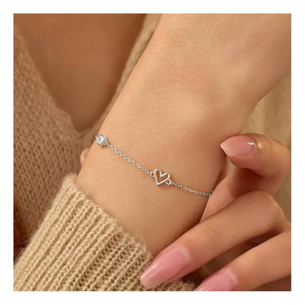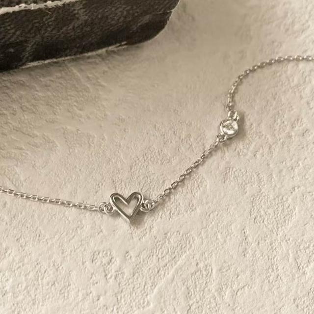 手鍊 手錬 手鏈 純銀手鍊 閨蜜手鍊 S925純銀愛心手錬女 心形鑲鋯石鍍14K金 女生手鍊 手飾 手環 手鍊女