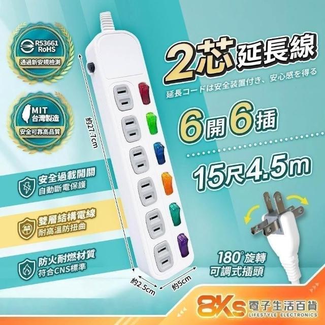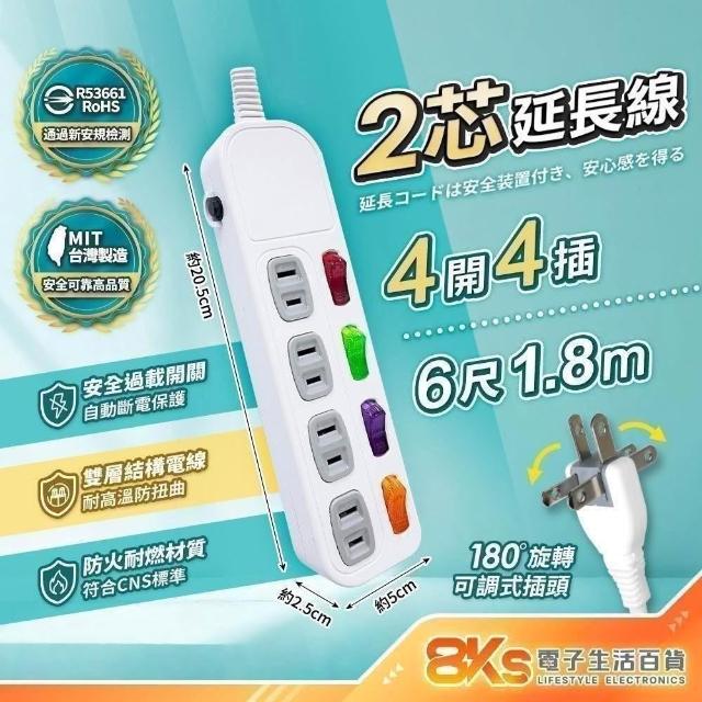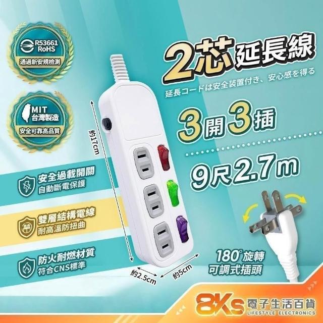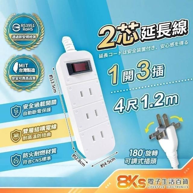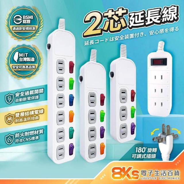 《台灣製造》新安規 3.4.6開 兩芯延長線 旋轉插 插頭 1.8m2.7m3.6m BSMI認證R53951