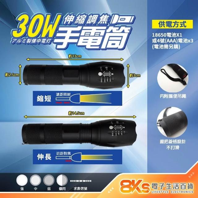 《現貨》鋁合金手電筒 30W/35W/46W/50W/P100 伸縮調焦、多段調光、防潑水、耐磨 露營登山維修夜間釣魚