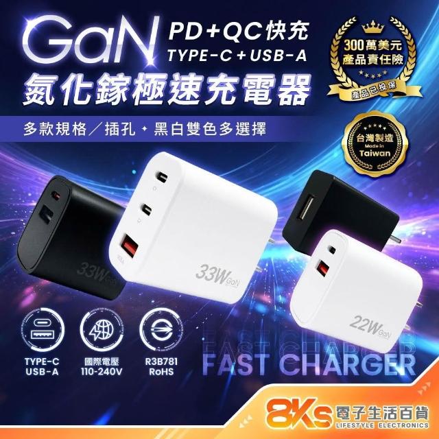 《台灣製造》GaN氮化鎵 極速充電器 PD+QC快充 豆腐頭 快充頭 TYPE-C USB BSMI認證 蘋果/安卓手機