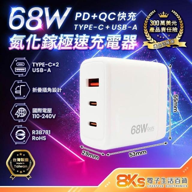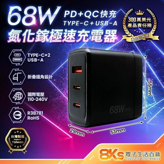 《台灣製造》68W氮化鎵 充電器 PD+QC快充 多孔充電頭 折疊插角 蘋果安卓手機 TYPE-C USB BSMI認證