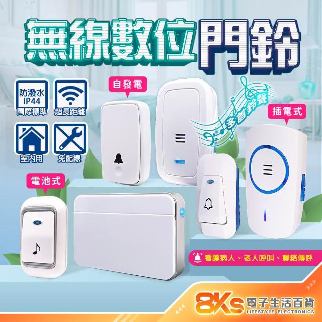 《附發票》無線數位門鈴 自發電 插電式 電池式 警報器 緊急看護 居家照護 多首鈴聲 IP44國際標準防潑水 NCC認證