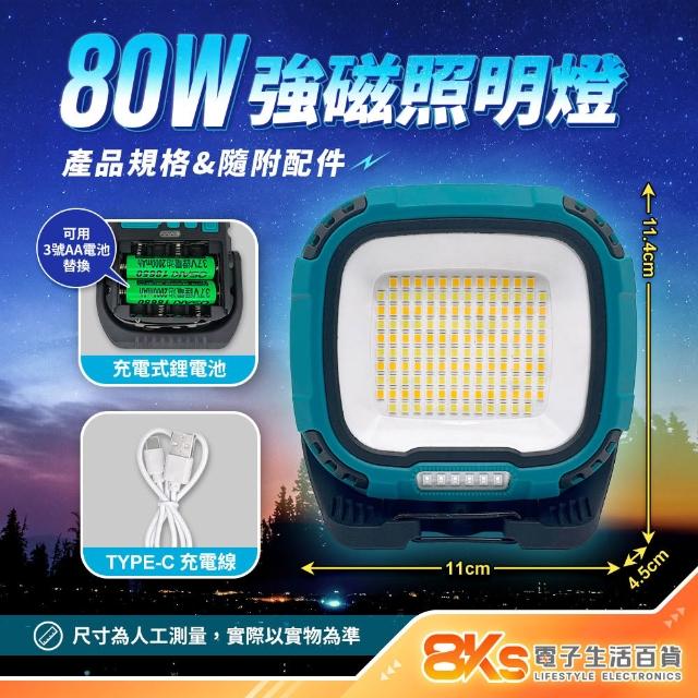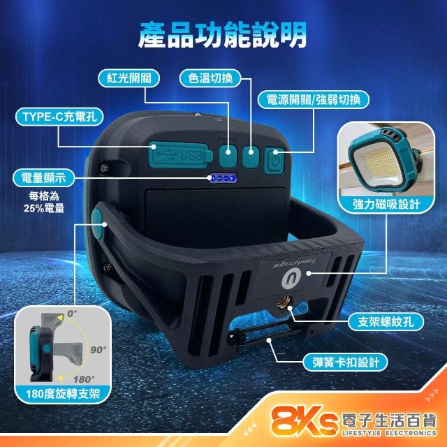 《現貨》80W強磁照明燈 搭贈BSMI電池 TYPE-C充電 8000流明 多種色溫 紅光閃爍 磁吸工作燈 旋轉支架