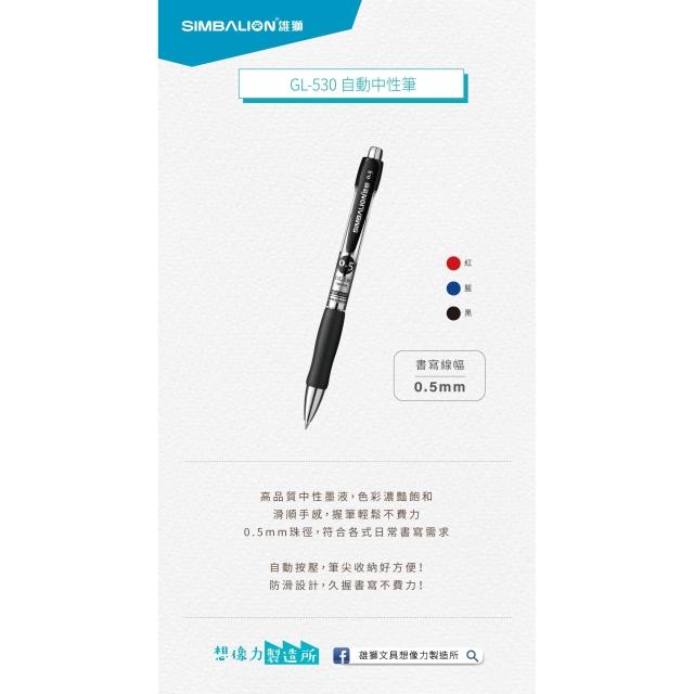 SIMBALION 雄獅文具雄獅 自動中性筆 GL-530(多色)