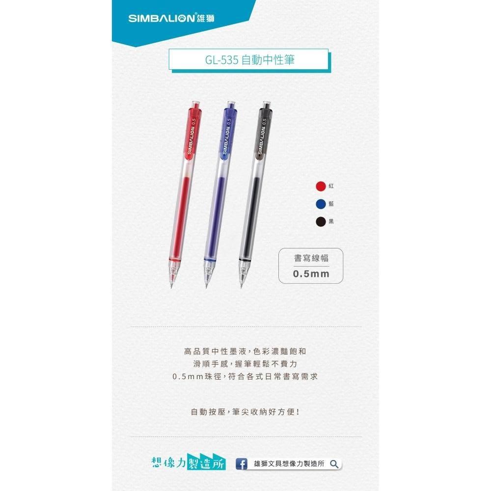 SIMBALION 雄獅文具雄獅 GL-535自動中性筆0.5MM