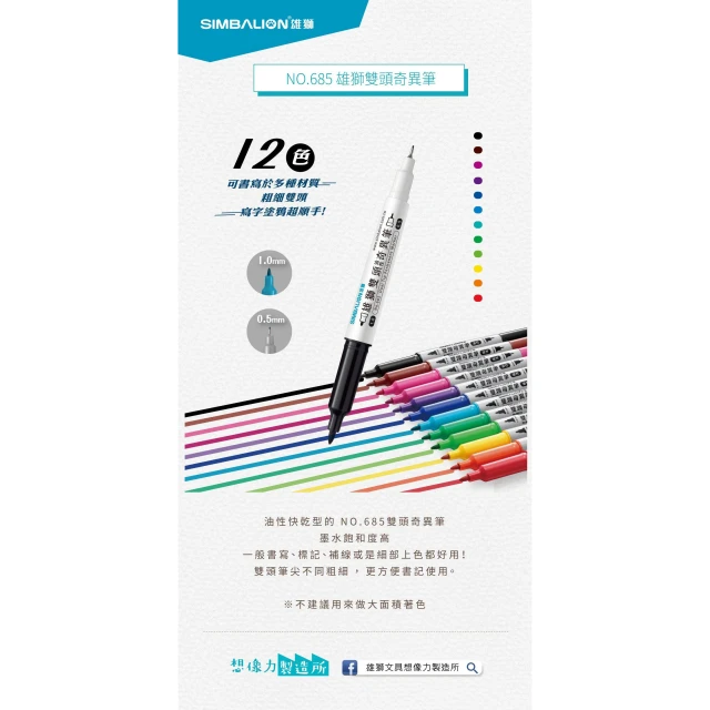 SIMBALION 雄獅文具雄獅 雙頭奇異筆/速乾筆 NO.685 (多色)