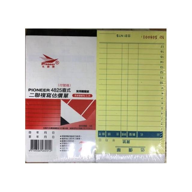 Pioneer 先鋒PIONEER先鋒牌 免用複寫紙 估價單直式二聯(附號碼) 4825