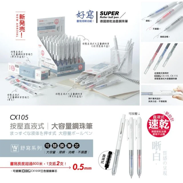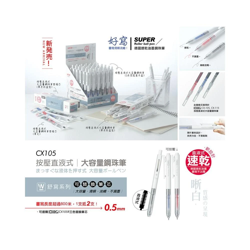 COX 三燕COX三燕 CX105_0.5MM按壓直液式/大容量鋼珠筆(多色)