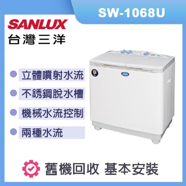 SANLUX 台灣三洋雙槽洗衣機 容量 洗衣10kg 脫水6.5kg SW-1068U