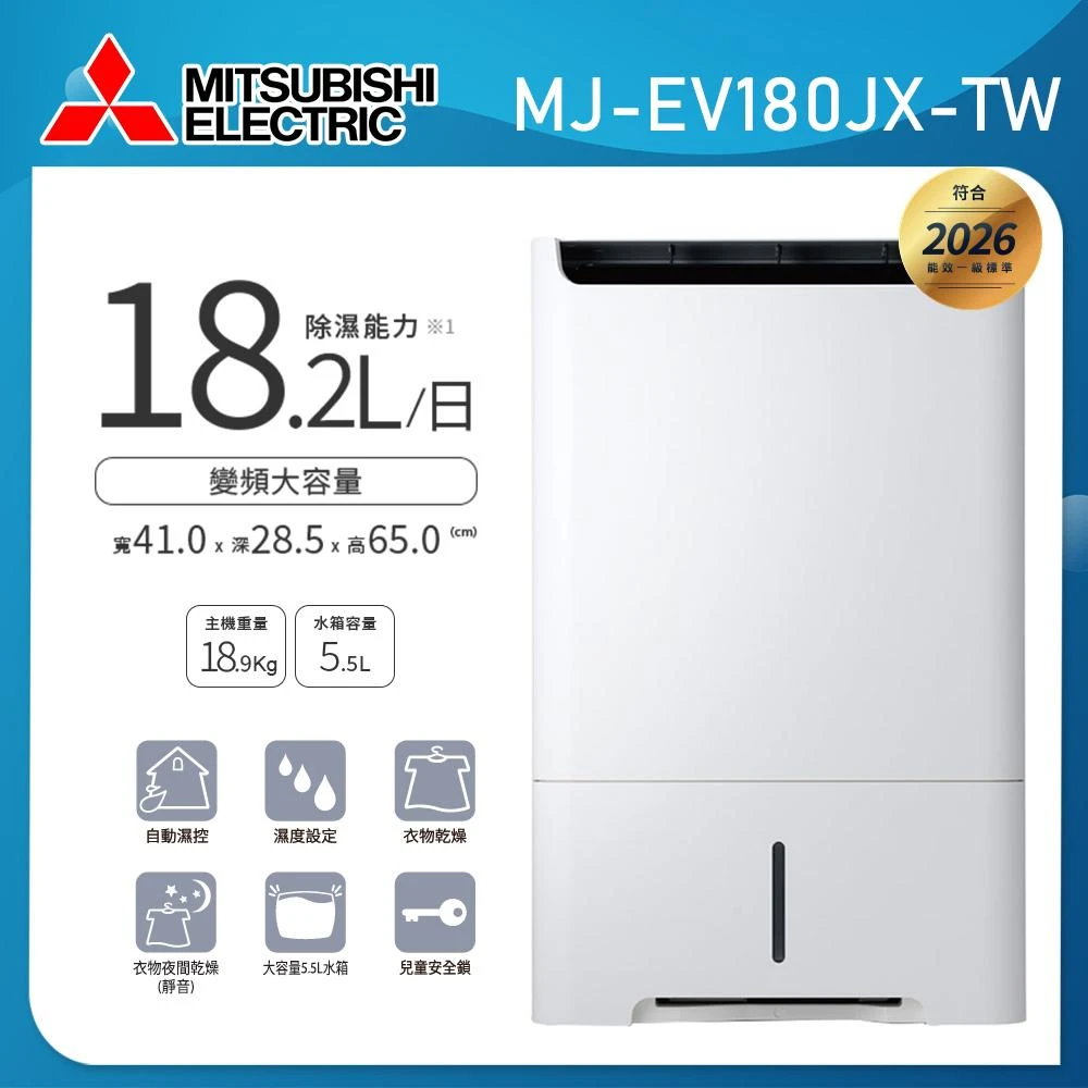 MITSUBISHI 三菱電機MITSUBISHI 三菱電機日製◆18公升◆變頻高效除濕型 (MJ-EV180JX-TW)