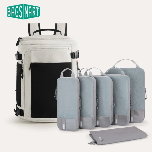 BAGSMART38L 旅人休閒後背包 + 壓縮收納袋6件組