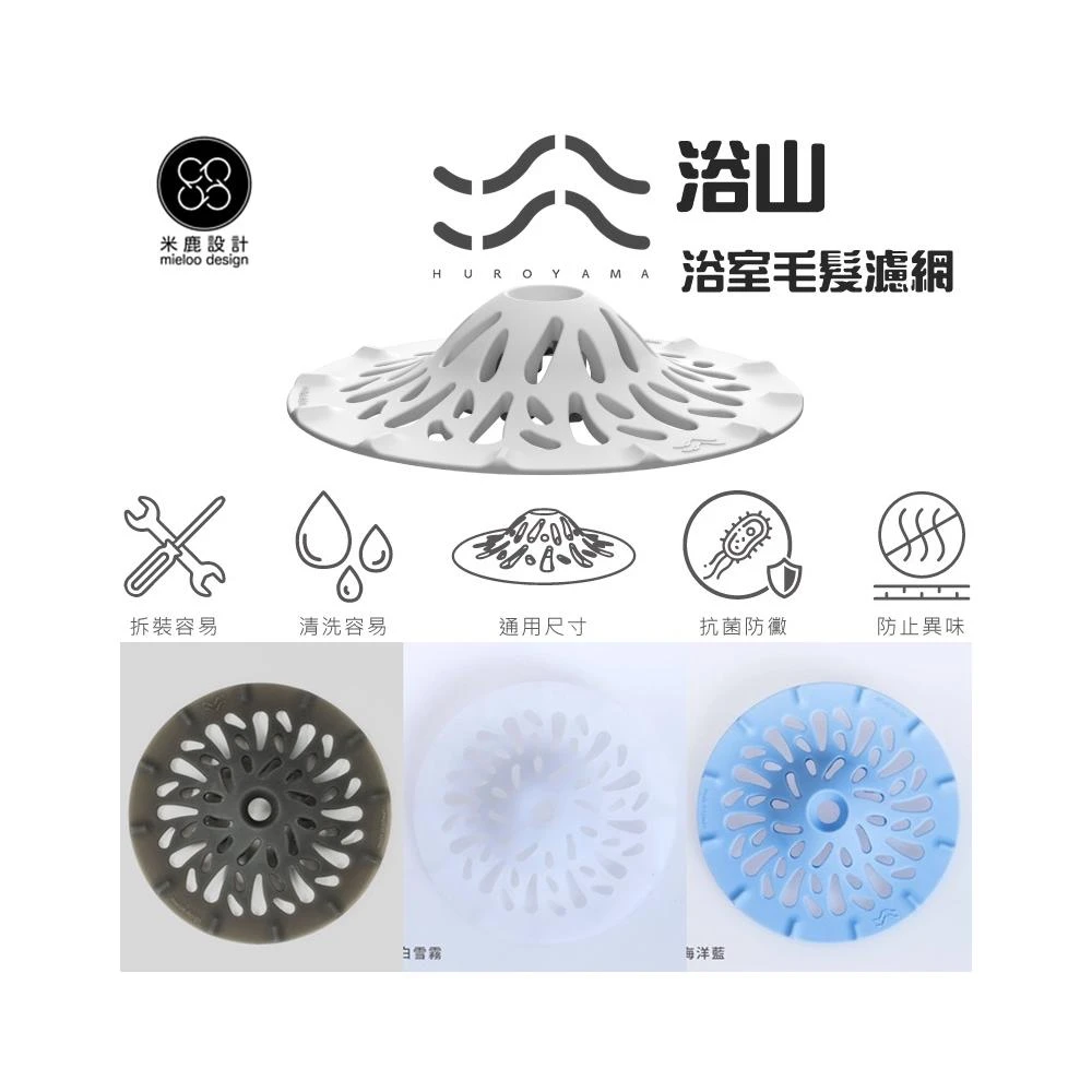 大、中、小浴山|台灣製|浴室排水口毛髮濾網| HUROYAMA 食品級抗菌矽膠 過濾網 毛髮過濾