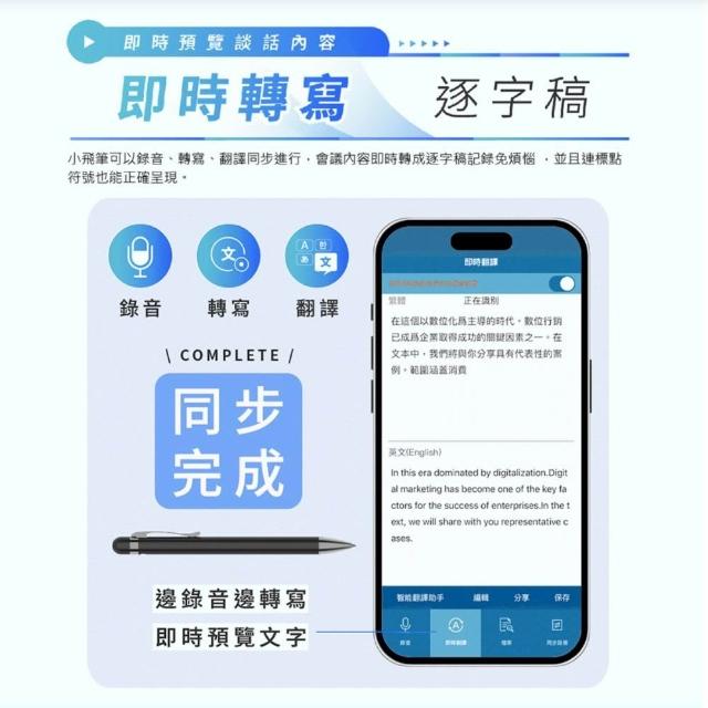 - 邊錄邊轉寫,可即時預覽逐字稿