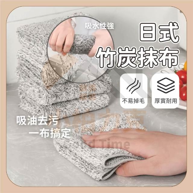 《小柏力克》日式竹炭抹布(單條) 竹炭纖維 不沾油污 雙面可用 吸水性強 加大加厚 乾濕兩用 不易沾油 一沖即淨 清潔污