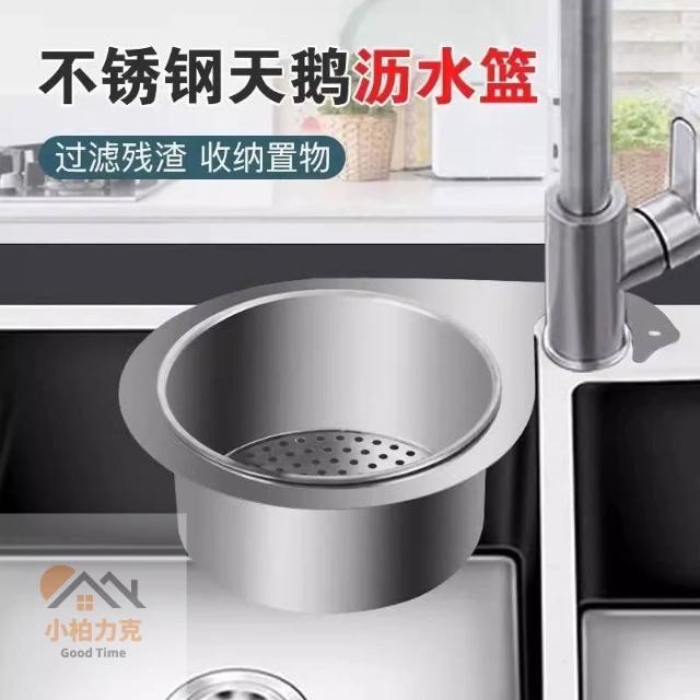 《小柏力克》 不鏽鋼過濾殘渣天鵝瀝水籃 廚餘過濾籃 廚房水槽過濾 水槽瀝水網 可掛式瀝水籃 瀝水籃 殘渣過濾網