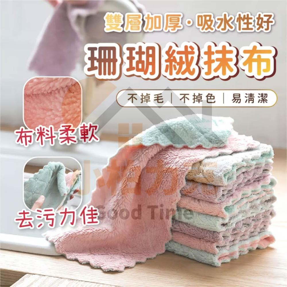 《小柏力克》 雙層珊瑚絨抹布 抹布 擦手巾 家用吸水不掉毛 加厚珊瑚絨毛巾 不沾油 廚房洗碗布